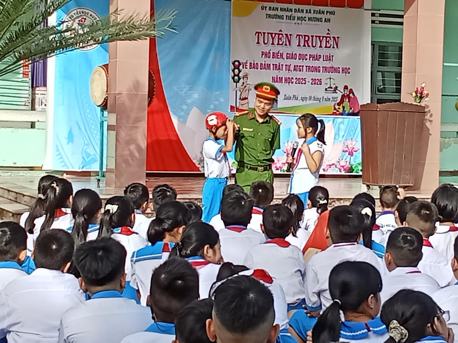 Liên đội trường Tiểu học Hương An phối hợp với Công an xã Xuân Phú đã tổ chức buổi ngoại khóa với nội dung tuyên truyền Luật giao thông đường bộ cho các em học sinh trường Tiểu học Hương An.
